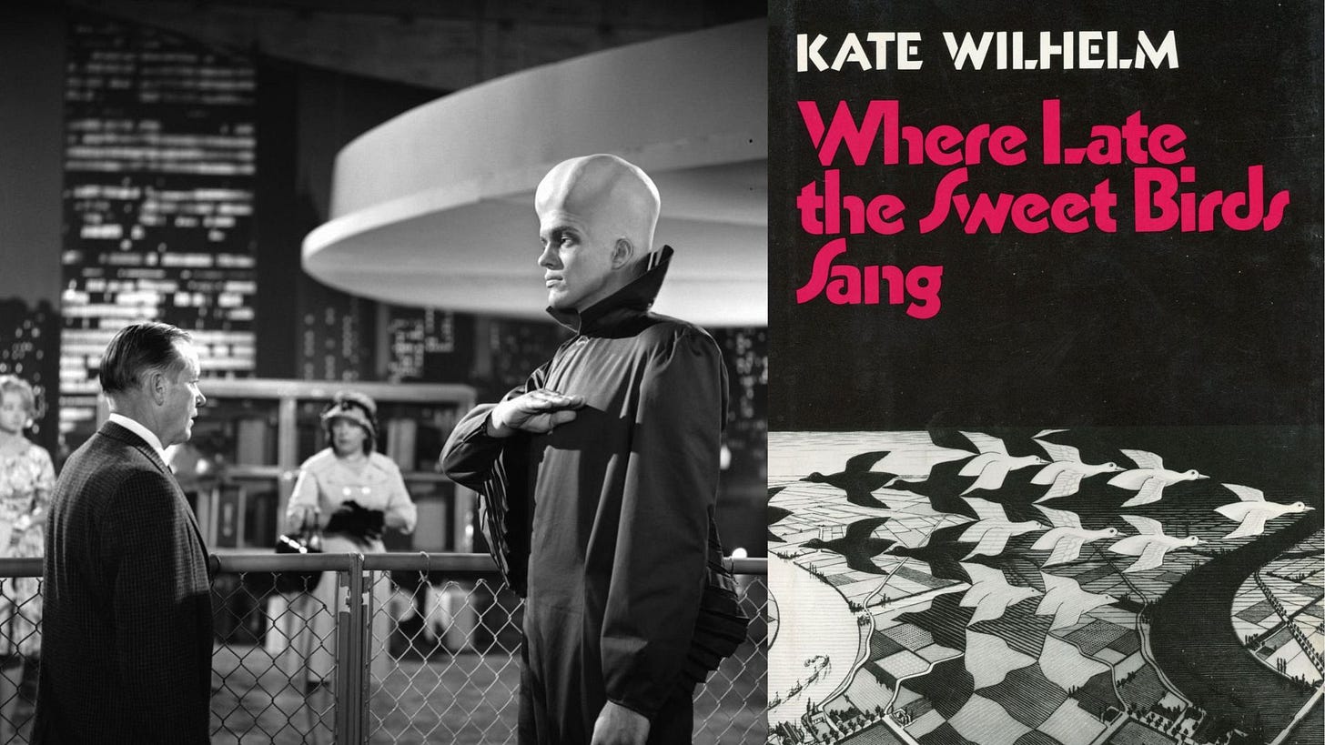 Damon Knight’s Twilight Zone episode “To Serve Man,” featuring 7-foot-tall actor Richard Kiel, and Kate Wilhelm’s best-known novel, with cover art by M.C. Escher.