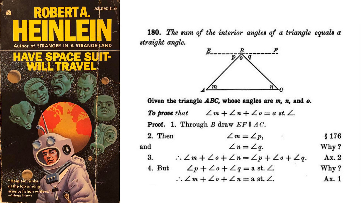 I have ignored sci-fi books my entire life, and I’m pretty sure it’s because of Mr. Strand and his geometry class. Again, I’ve never bothered to investigate this further, until now. But it should be noted, with the passage of time and the power of internet research, that this particular Heinlein book title was WRITTEN FOR CHILDREN. So Strand wasn’t as ferocious as I’d always remembered. While we hacked through the jungle of geometric proofs, he read kids’ books. Like a child.