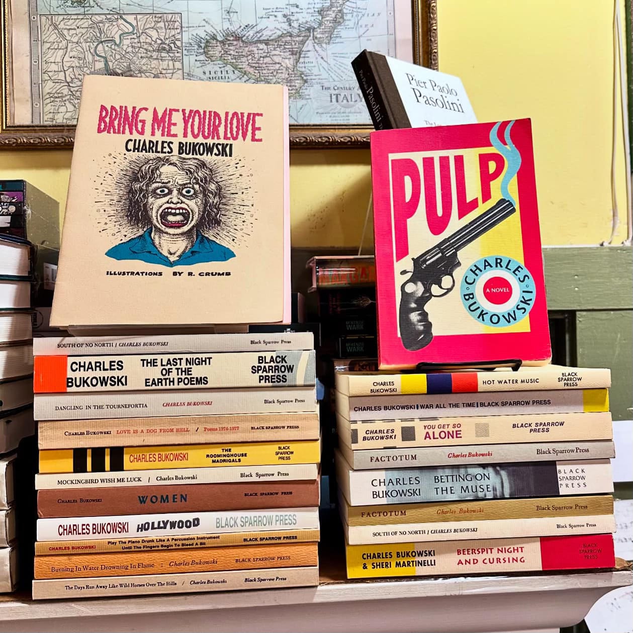 Bukowski/Black Sparrow display at Lamplight Books, Seattle, 2024