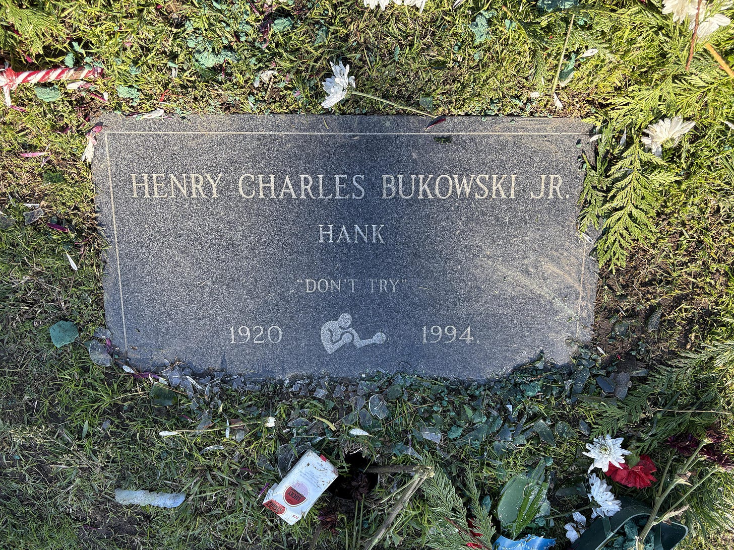 So if you’re a book shoplifter, you might think twice before stealing a Bukowski book. You’re certainly not doing his literary estate any favors, and the local independent stores know exactly what you’re up to. Would-be thieves should heed the words of Bukowski himself. He died in 1994 at the age of 73, and on his tombstone, the epitaph reads simply, “Don’t try.”